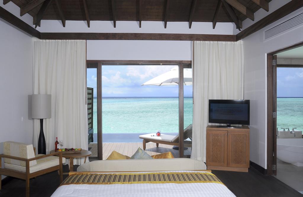 Просторные, оформленные в современном стиле номера, с деревянными полами и соломенной крышей. В вашем распоряжении имеется частная веранда для загара, на которой Вы можете любоваться коралловым «садом» или сделать несколько шагов в нежные воды лагуны. Площадь Over Water Bungalows – 62 кв.м., Deluxe Over-Water Bungalow – 92 кв.м.,