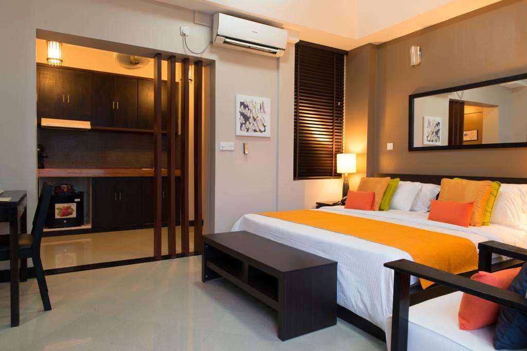Serviced Apartments состоят из трех комнат – гостиной, спальни и кухни.