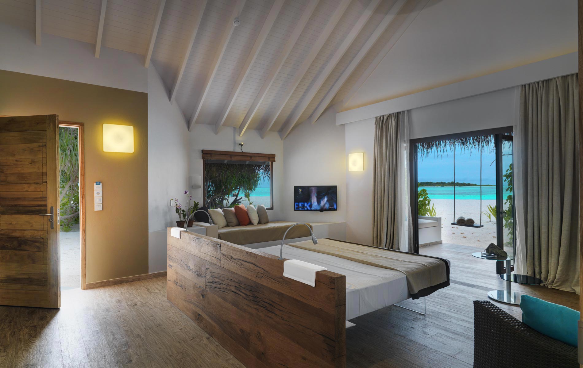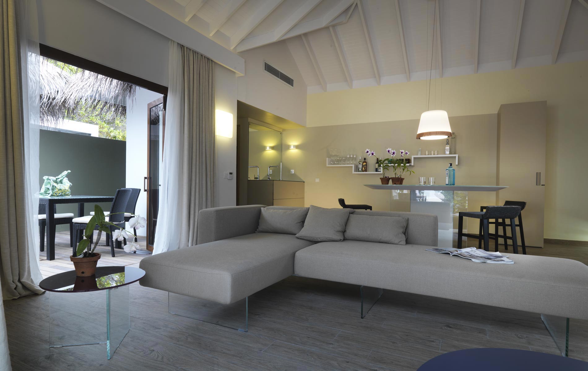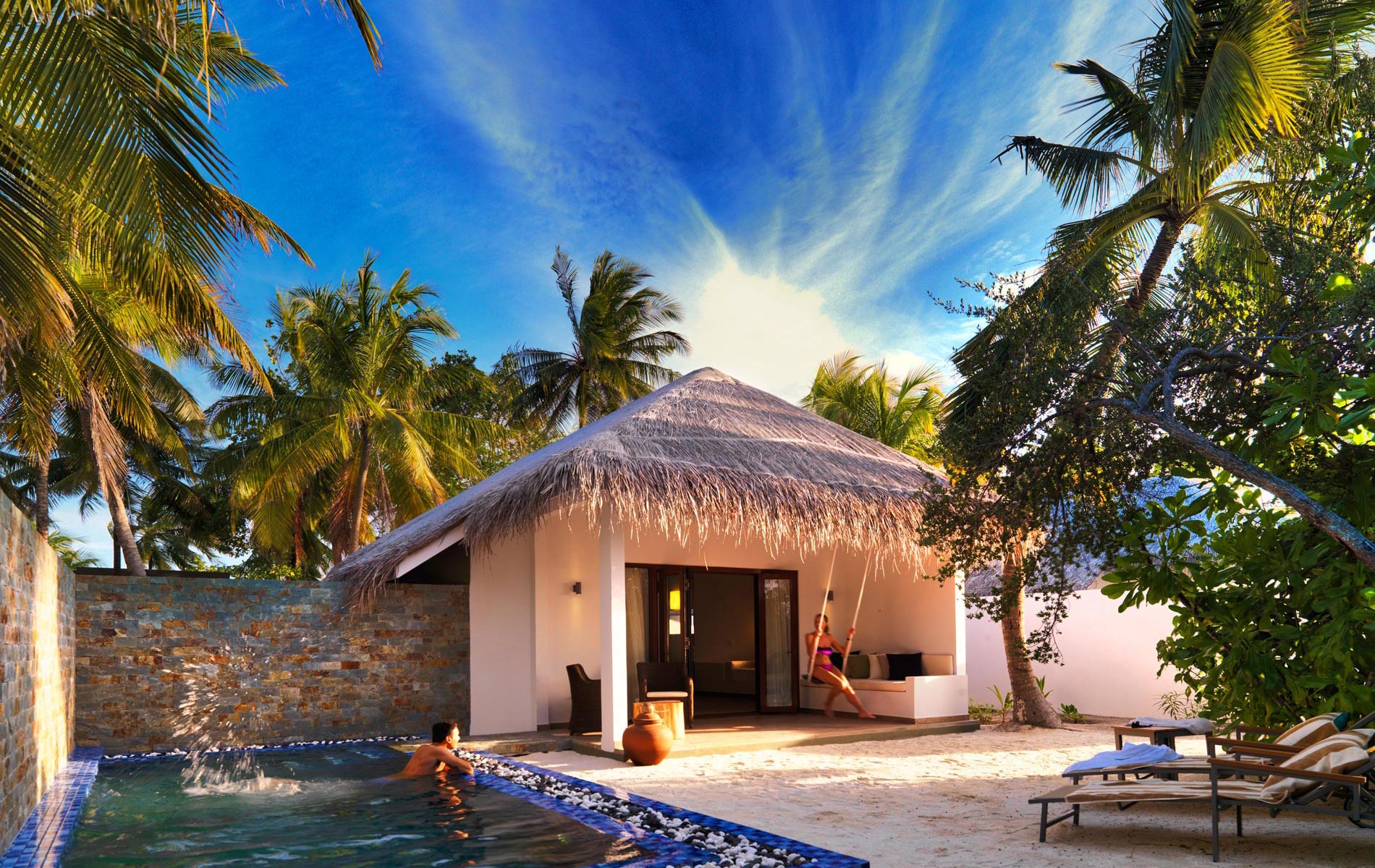 Один из самых последних курортов на Мальдивах, эксклюзивный Beach Suite с бассейном, предлагает элегантные номера с частным бассейном и стильным итальянским дизайном. С каждой точки комнаты гости обращаются с видами, которые поддерживают постоянную визуальную связь с ландшафтом. Материалы и цвета меняются в соответствии с различными ощущениями. Окно внутри комнаты. Вы сразу находитесь в центре растительности и океана. Кровати, которые плавают в воздухе. Деревенские столы из дерева.