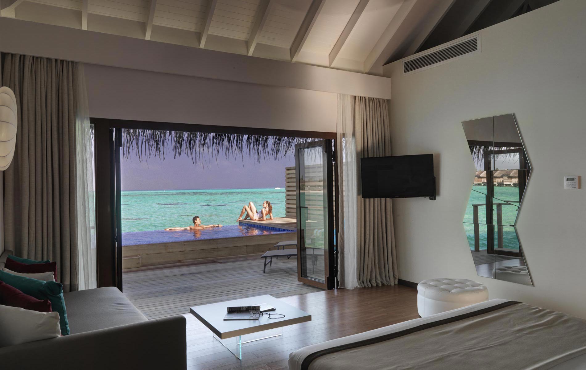Один из самых эксклюзивных курортов на Мальдивах, Люкс Lagoon с бассейном предлагает уникальные условия проживания с частным бассейном и стильным итальянским дизайном. С каждой точки комнаты гости обращаются с видами, которые поддерживают постоянную визуальную связь с ландшафтом. Материалы и цвета меняются в соответствии с различными ощущениями. Окно внутри комнаты. Вы сразу находитесь в центре растительности и океана. Кровати, которые плавают в воздухе. Деревенские столы из дерева.