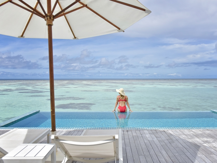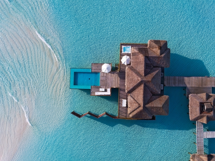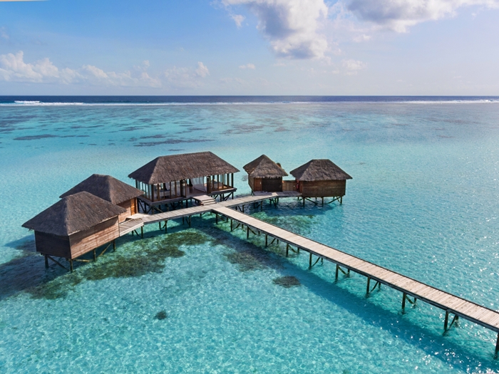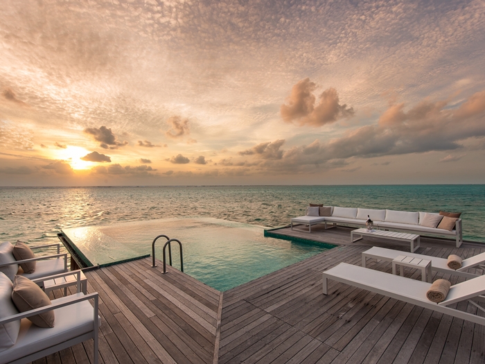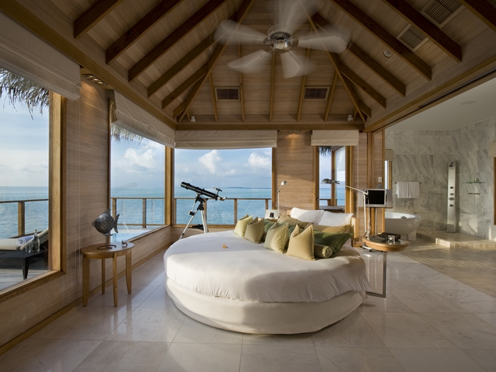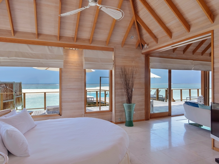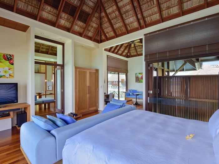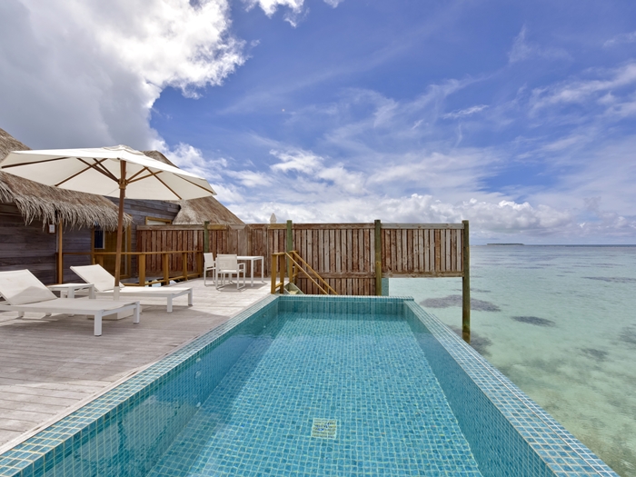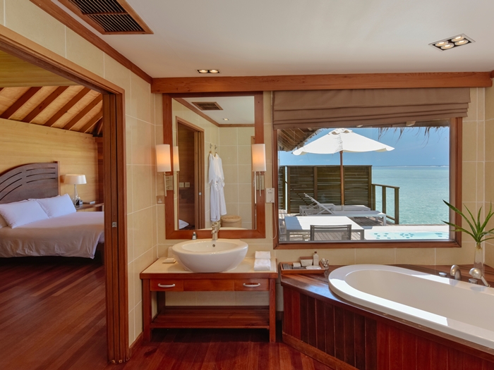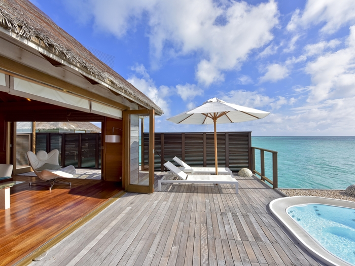 Water Villa – автомат для приготовления кофе-espresso, СD-стерео система Deluxe Water Villa – отличается большими размерами комнаты, к морю ведет двойная терраса, дополнительно – CD проигрыватель, телевизор, DVD видеомагнитофон, DVD – библиотека, джакузи.