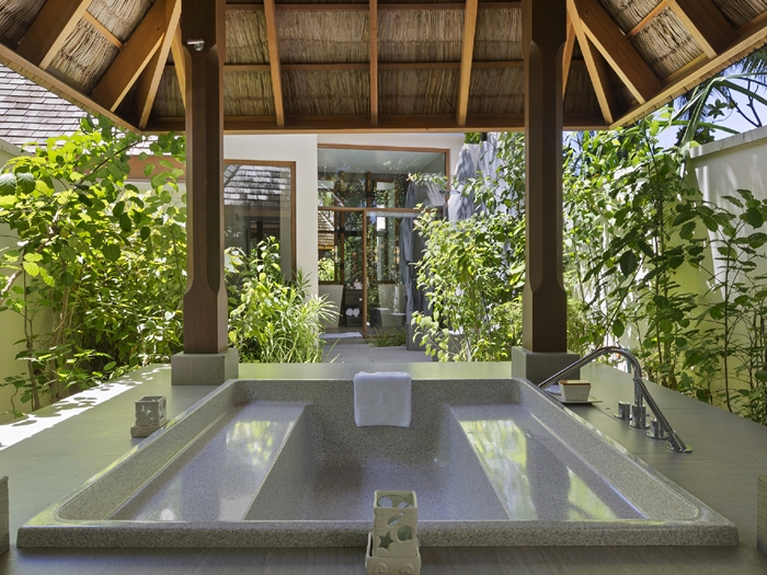 Beach Villa – кондиционер, мини-бар, софа,письменный стол, телефон, розетки для компьютеров, сейф, электрокипятильник для приготовления чая и кофе, потолочный вентилятор, ванная комната под открытым небом в садике с ванной и душем, фен, терраса.