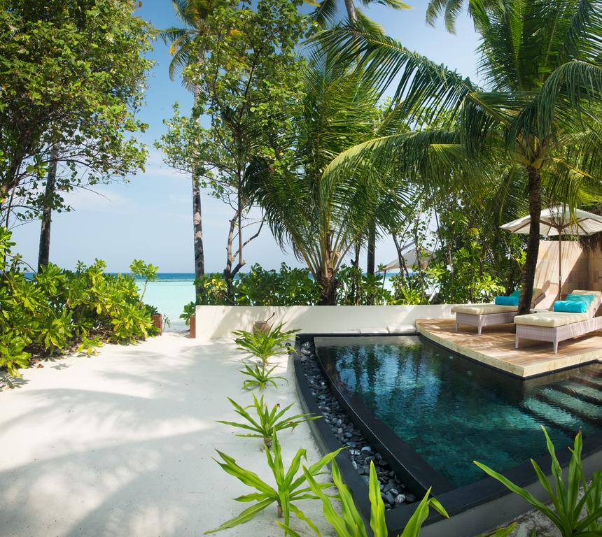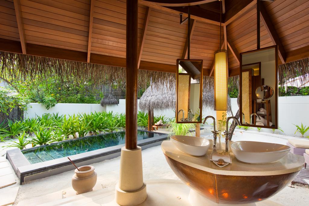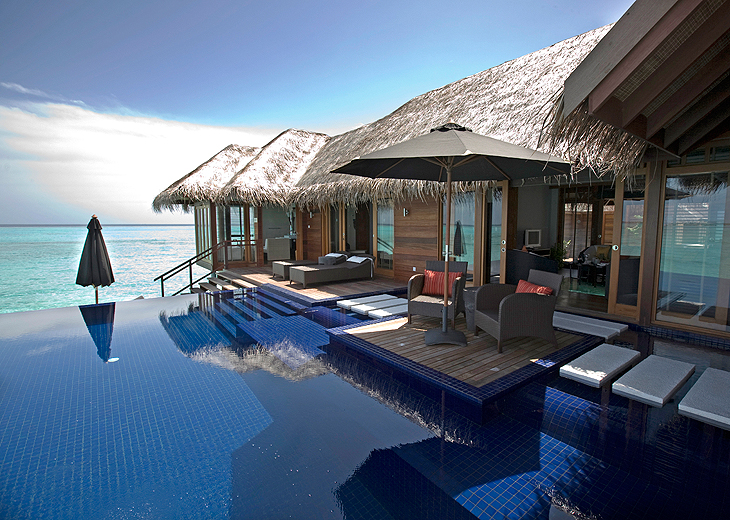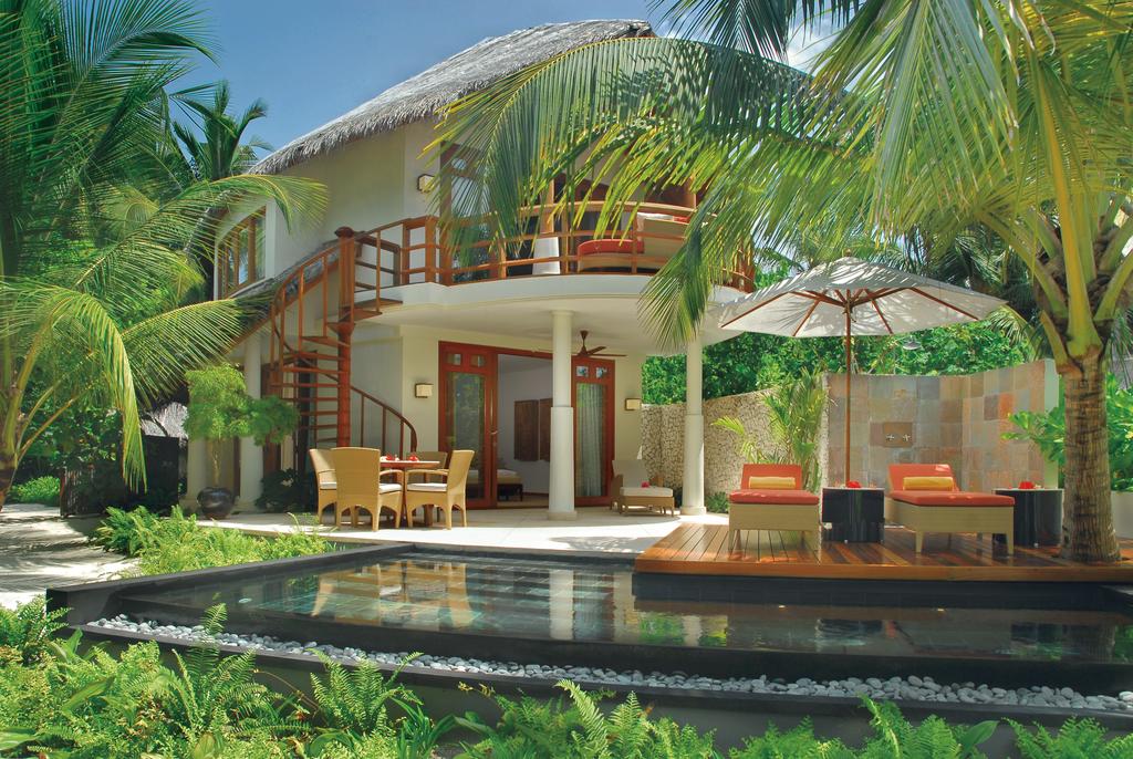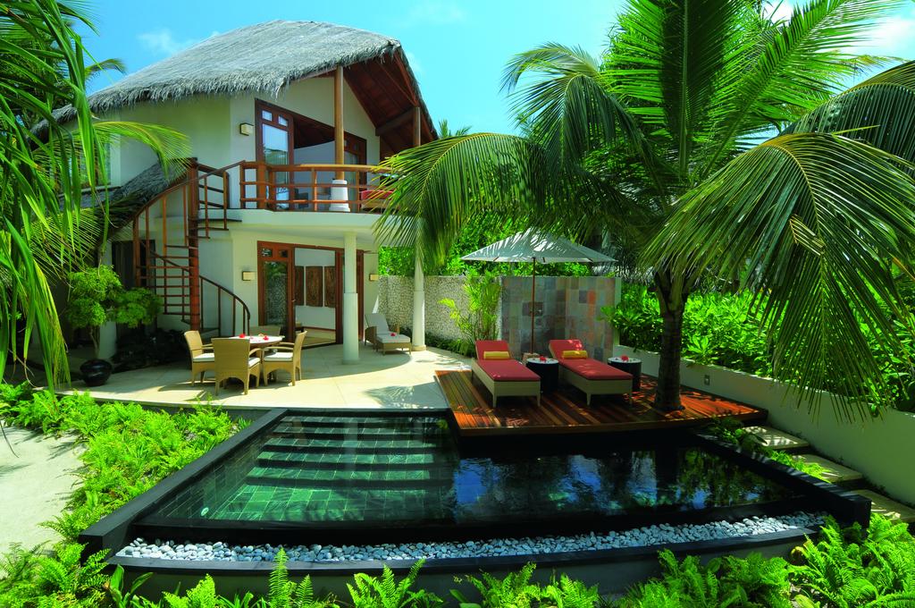 Каждая вилла состоит из спальни, ванной комнаты с отдельным душем (внутренним и внешним), а также меблированной террасы или балкона и индивидуального бассейна. Площадь Water Villas – 100 кв.м. (2 взрослых + 1 ребенок), Beach Villas – 350 кв.м. (2 взрослых + 1 ребенок), двухэтажных Beach Villas – 410 кв.м.(2 взрослых + 2 ребенка или 3 взрослых), Presidential Beach Villa – 700 кв.м. (6 взрослых + 3 ребенка).
