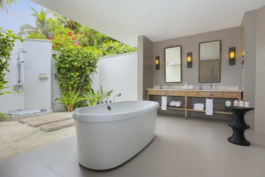 Виллы на пляже имеют такую роскошь, как собственный водоем с прилегающей открытой ванной комнатой в саду и отдельной террасой.