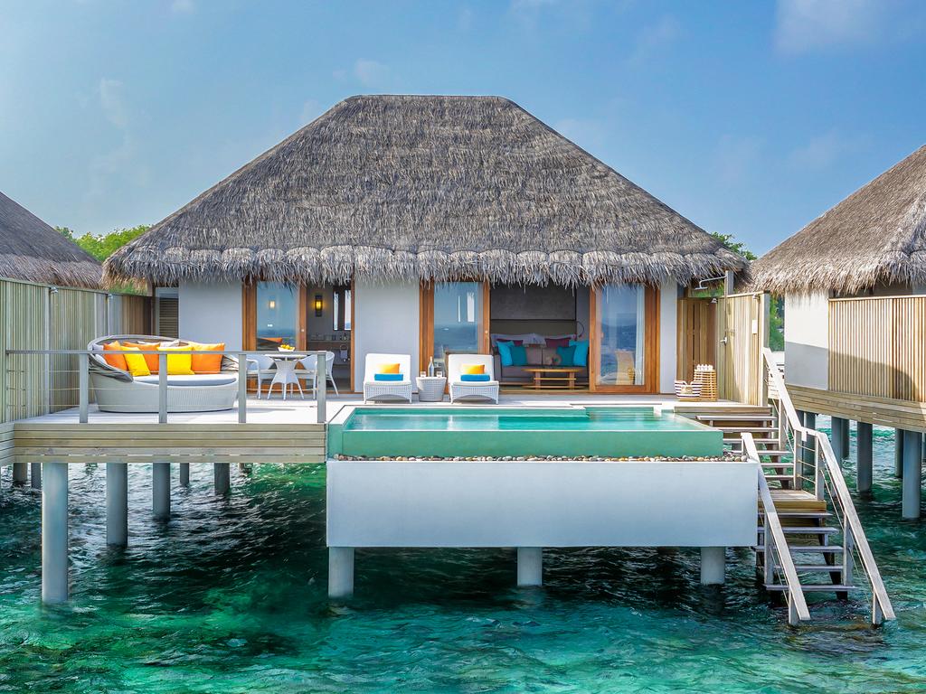 Наслаждайтесь каждым моментом в собственном прибрежном бассейне.Все водные виллы, имеющие выход на пляж и к лагуне, оформлены в сдержанном тайском стиле на фоне сложной архитектуры Мальдив с современными удобствами.