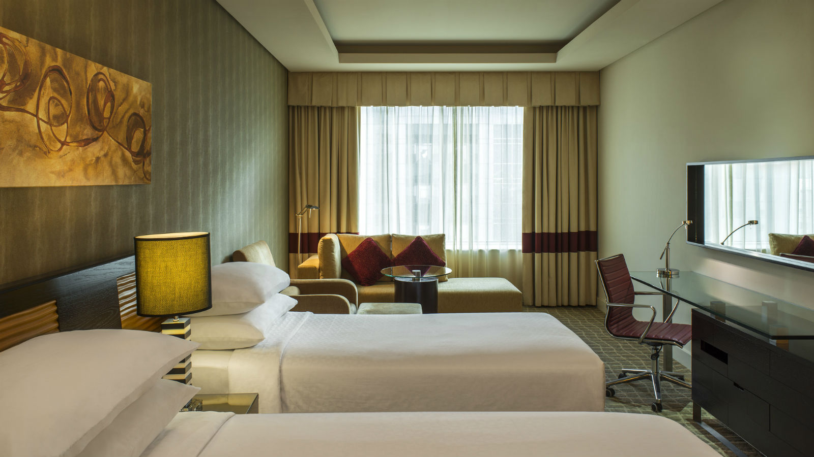 Представительский люкс в Four Points by Sheraton Bur Dubai расположен на верхних этажах отеля. Эти люксы оснащены улучшенными удобствами и имеют размеры 55 м². В идеале это лучший вариант для разочарованного корпоративного путешественника, ищущего размещение в Бур-Дубае.