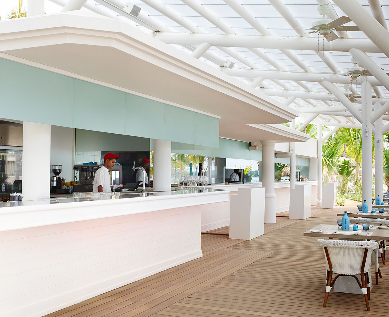 MIXE – готовит привлекательное ежедневное меню из продуктов островного происхождения, от свежих блюд для традиционного шведского стола на завтрак до мировых гастрономических изысков. Это зрелищное место: вы увидите печь-гриль Josper, открытые кухни, места с азиатской кухней, кухню с острой пищей, приготовление лепешек на тандыре, печь садж для приготовления восточного хлеба и зону в японском стиле для приготовления теппан-яки.