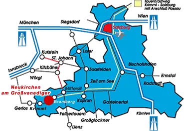 Курорт Нойкірхен-ам-Гросвенедігер входить до складу Wildkogel Arena Neukirchen and Bramberg, який розташований у курортному регіоні Національного парку Hohe Tauern між Національним парком та Кітцбюельськими Альпами. Він виступає за сталий, дружній до клімату туризм і пропонує визначні пам’ятки, які варто побачити молодим і старим. Прикладами унікальної природи є Гросвенедігер, «найвища гора Зальцбурга», або пам’ятка природи водоспад Унтерзульцбах. Але під час літньої чи зимової відпустки ви не повинні пропустити смачні страви Пінцгау, які можна скуштувати в ресторанах ідилічного Нойкірхена, а також у численних сільських хатинках на горі. Ви також можете по-справжньому розслабитися в готелях, квартирах для відпочинку, пансіонатах та приватних кімнатах у Нойкірхені-ам-Гросвенедігер та його околицях.