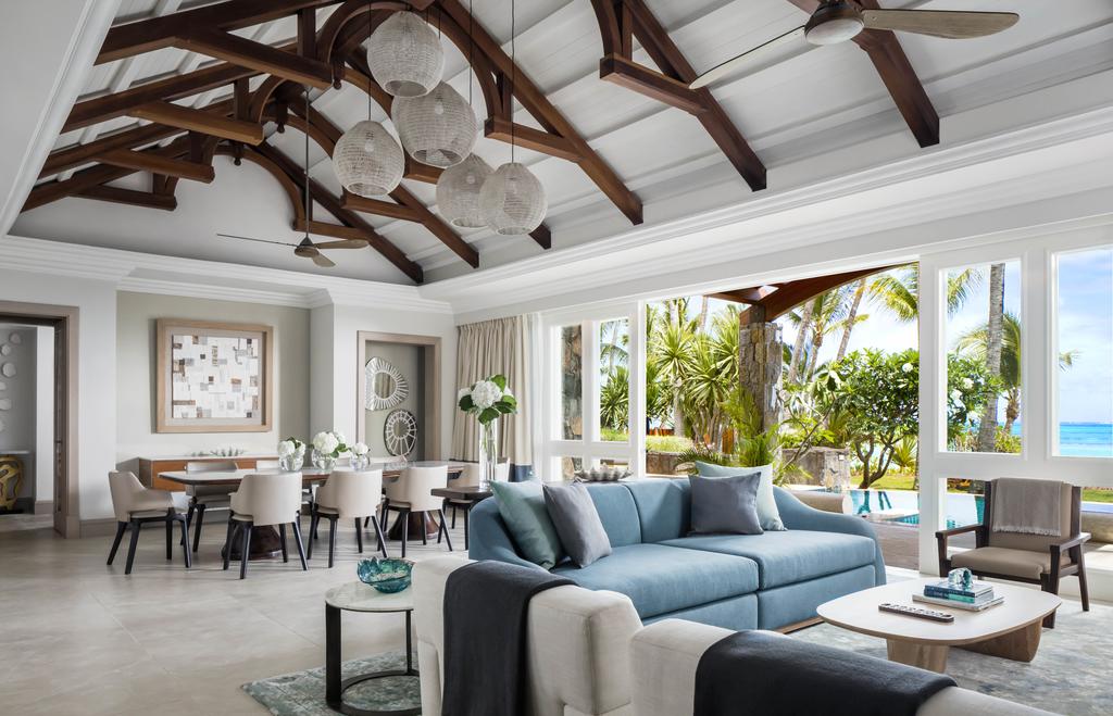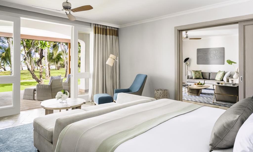 Номер расположен на первом этаже и отличается просторной террасой, которая выходит на пышный тропический сад и лазурный океан. Это настоящий райский уголок для безмятежного романтического или семейного отдыха на Маврикии.