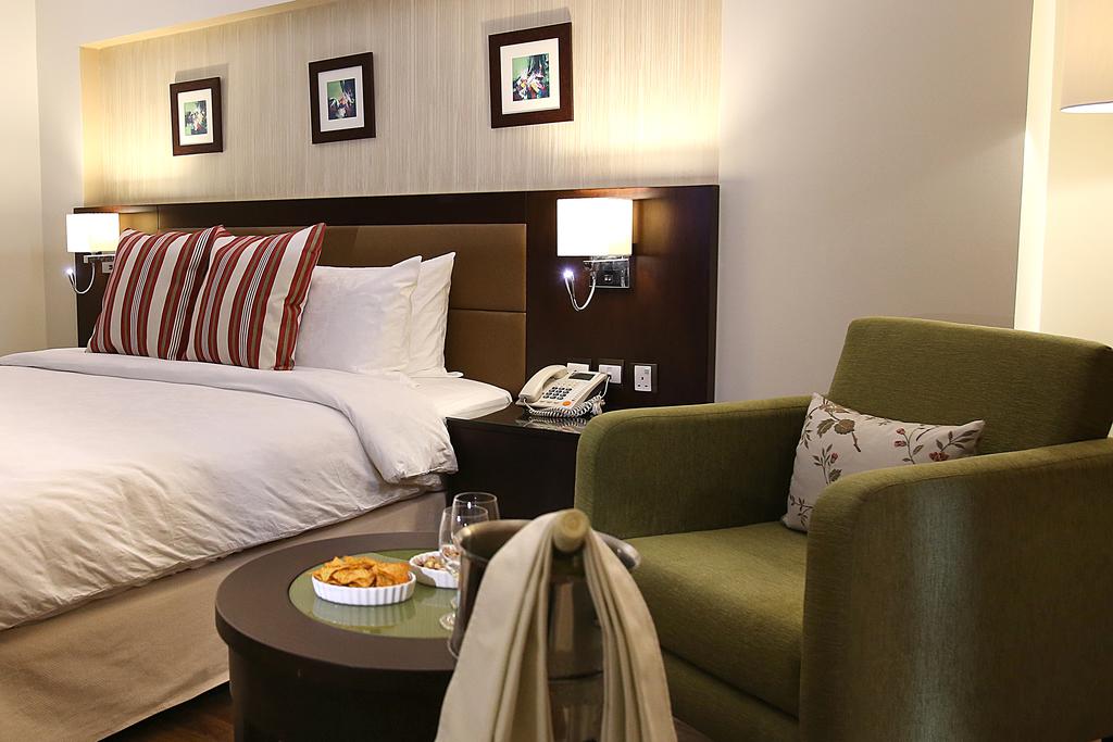 · Deluxe Room – уютные номера, оформленные в бежевых тонах, площадью от 28 кв.м. Номера состоят из спальни, полностью оснащенной ванной комнаты, балкона с видом на город. Номера рассчитаны на размещение 1 ребенок и 2 взрослых.