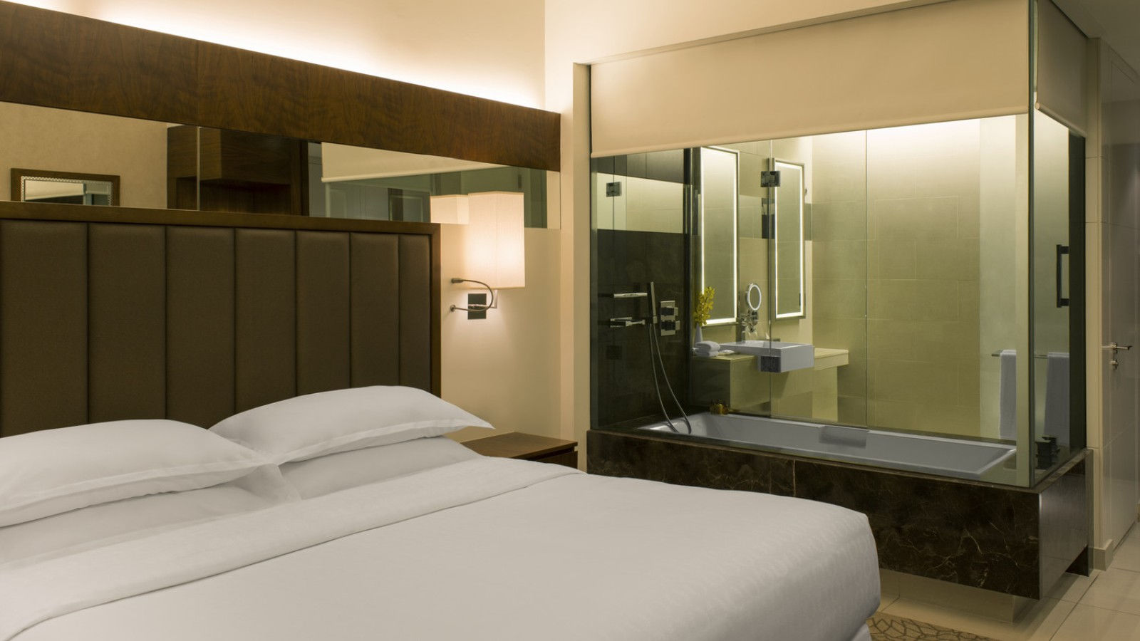 Идеально подходит для деловых путешественников, наши 88 клубных комнат со средним размером 35 квадратных метров предлагают полный комфорт и имеют превосходный вид на Дубай. Sheraton Club Гости имеют привилегии, которые включают бесплатный Интернет, собственную машину Nespresso, доступ к Sheraton Club и многое другое.