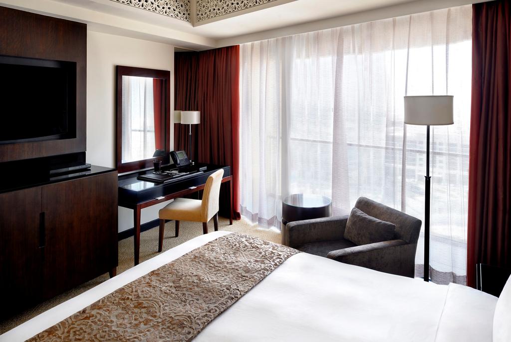 Гости могут расслабиться в блаженном спокойствии среди роскошных и щедрых пространств в нашем полулюксе Fountain View, в каждом из которых есть балкон, выходящий на Бурдж-Халифу и фонтан Дубая, кровать размера “king-size”, гардеробная и ванная комната с тщеславием и гардеробной.
