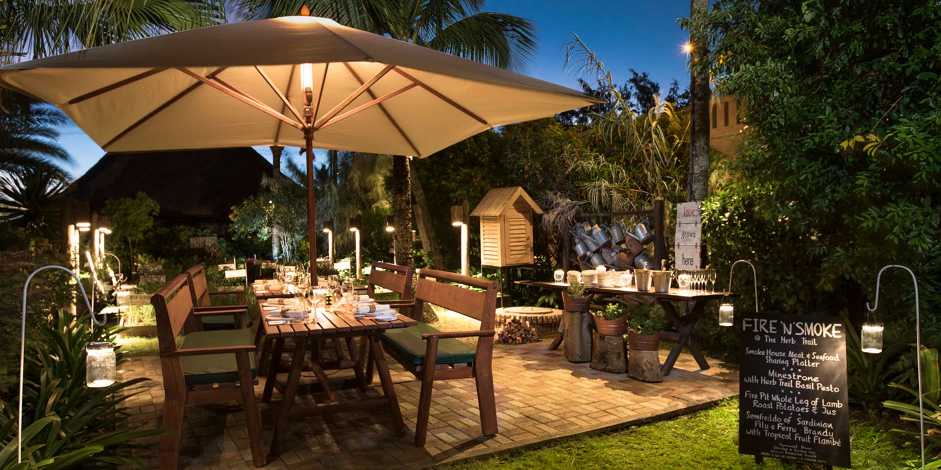 Травяная тропа– представляет собой роскошное кулинарное путешествие через блюда, медленно приготовленные в подземной пожарной яме, специально построенной в саду с травами. Меню из четырех блюд включает в себя мясо для курящего мяса и блюда из морепродуктов, суп из минестроне с нашим домашним травяным тростником с базиликом песто, целую ногу ягненка, приготовленную в течение дня в яме огня и полуфреддо с тропическим фруктовым фламбе.