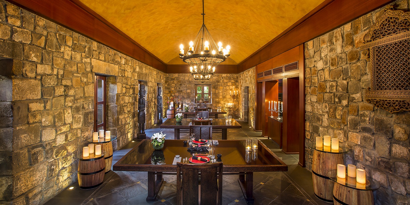 В роскошном обеденном ресторане с видом на Индийский океан и мерцающими огнями гавани Порт-Луи ресторан The Oberoi, Маврикий, включает в себя традиционный павильон соломенной крышей и ресторан на свежем воздухе под звездами. Гости приветствуются очаровательными деревянными скульптурами птиц и будут загипнотизированы лазурным отраженным бассейном, освещенным пылающими факелами в ночное время.