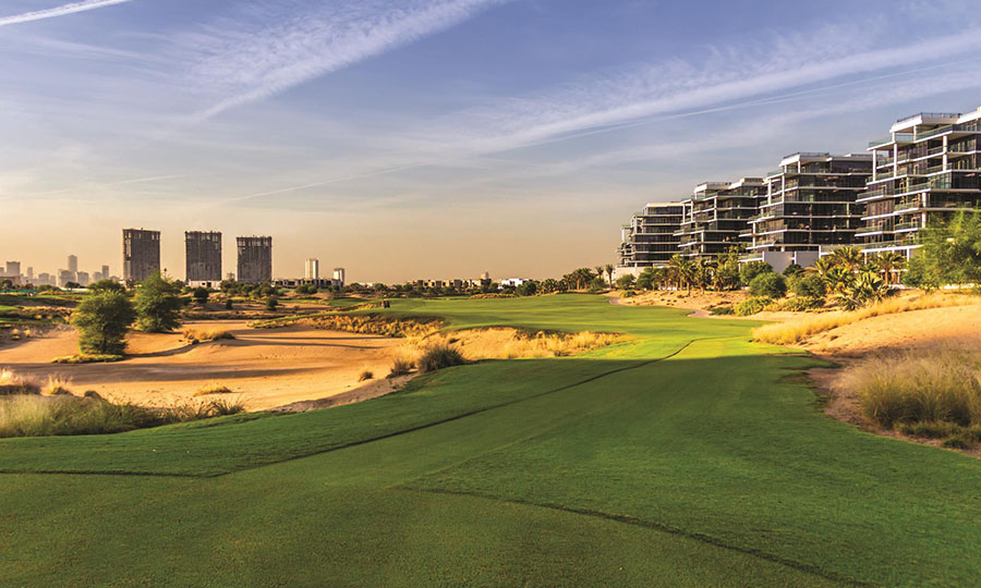 Міжнародний гольф-клуб Trump International розташований на площі понад 500 акрів і викуваний з колись плоскої та безплідної пустелі. Дубай став одним із провідних місць у світі гольфу. Аспекти дизайну, змішані з пустельним кліматом, працюють в єдності, щоб забезпечити особливий досвід гри в гольф і справжнє випробування гри. Безліч рівнів курсу є ключем до розроблення ігрової стратегії та дедалі більше розкривають себе як прогрес гравця в гольф через усі 18 лунок. Hanse Golf Course Design, на чолі з гольф-архітектором Гілом Хансом і його партнером Джимом Вагнером, використовував масивну і кавернозну барранку як основу маршруту.